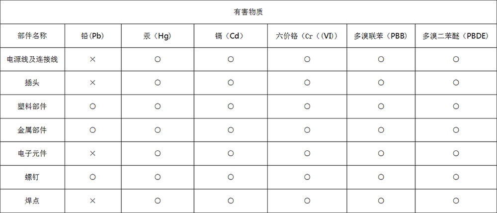 ○:表示該物質(zhì)在該部件所有均質(zhì)材料中的含量均在GB/26572-2011規(guī)定的限量要求以下。